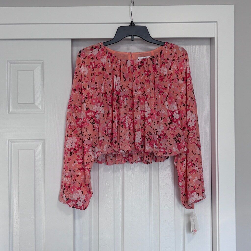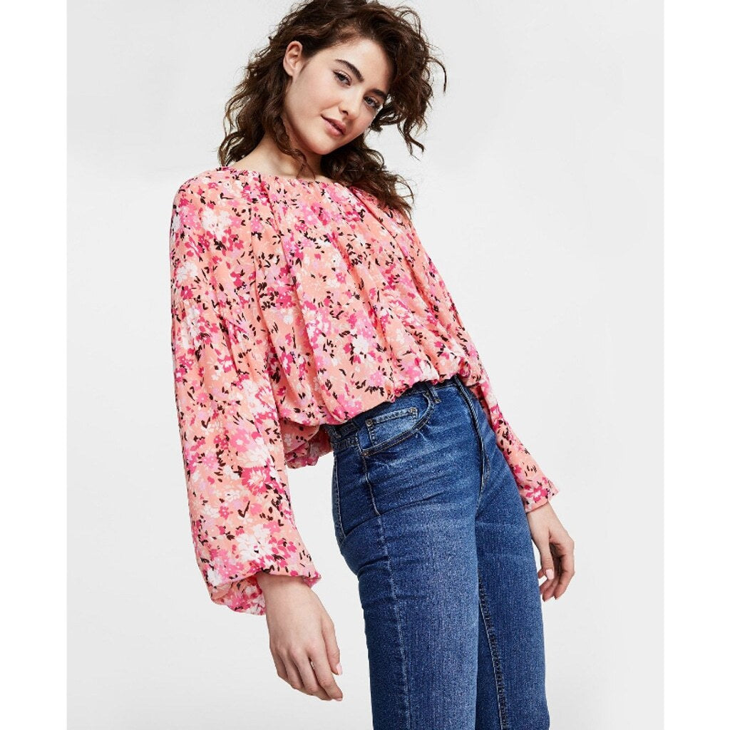 Bar III Women's XXS Pink Floral Print Boat Neck Chiffon Peasant Top NWT