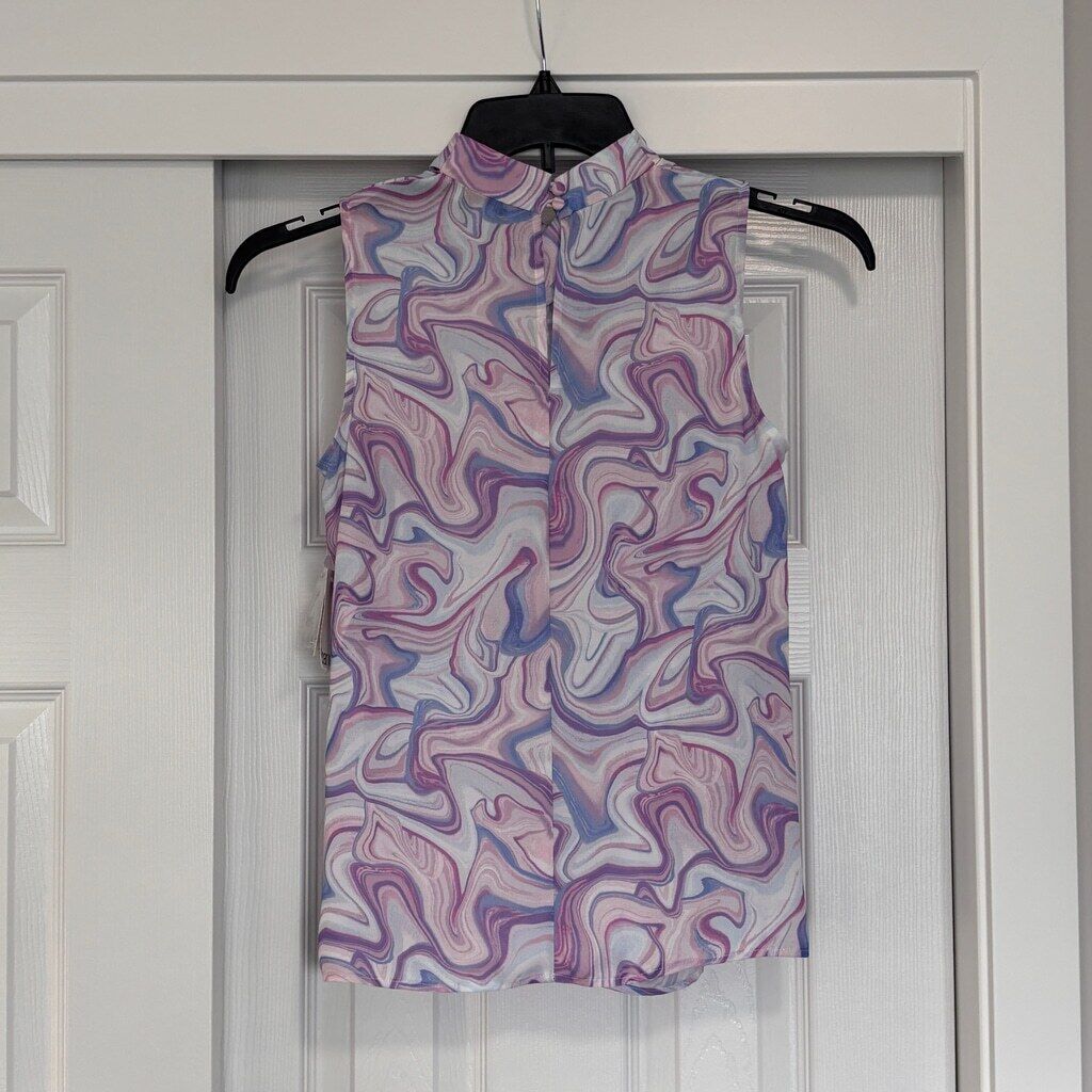 Bar III Women's XXS Purple & White Marble Print Cowl Neck Sleeveless Blouse NWT