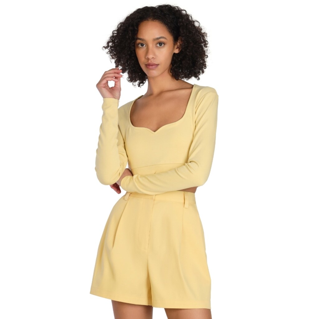 Bar III x Nicole Williams English Women's XS Yellow Cropped Long-Sleeve Top NWT
