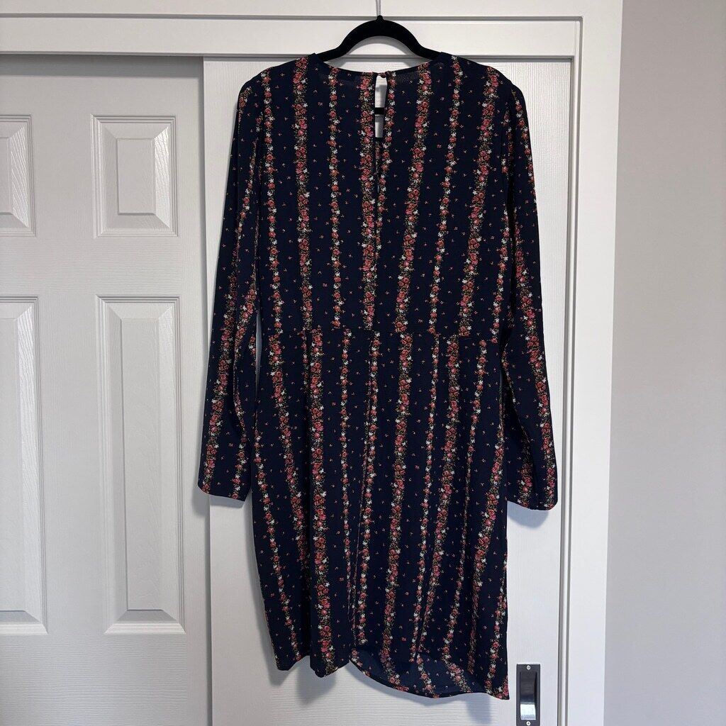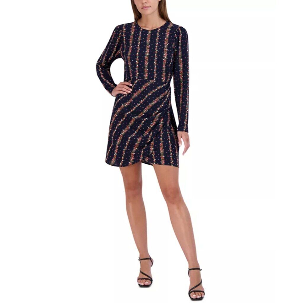 BCBGeneration Women's XL Navy Blue Floral-Striped Long-Sleeve Mini Dress NWT