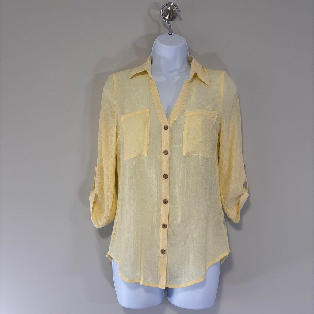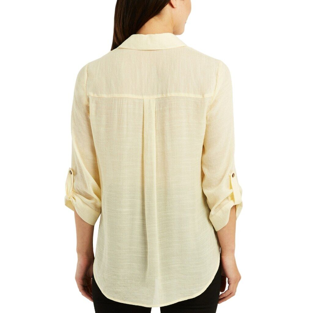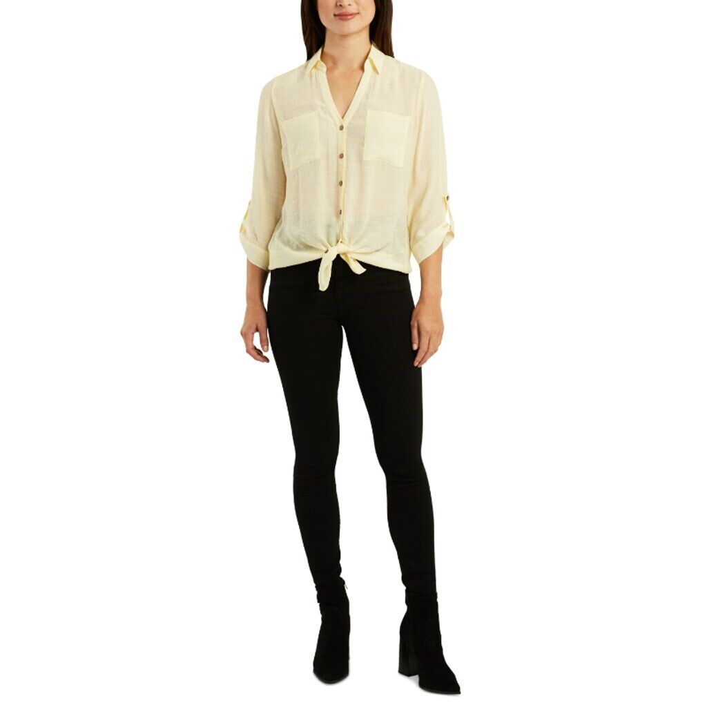 BCX Juniors' Size XS Yellow V-Neck Fold-Collar 3/4-Sleeve Utility Shirt NWT