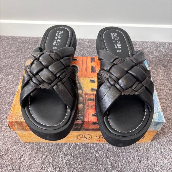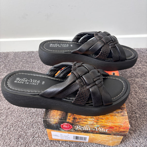 Bella Vita Size 11 Black & Brown Leather Italy Platform Blocky 90's Sandals NIB