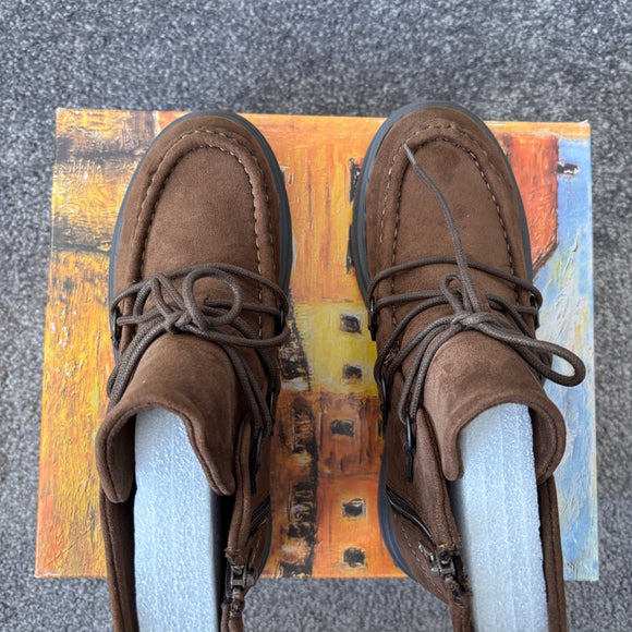 Lace up styling and inside zipper for easy on and off