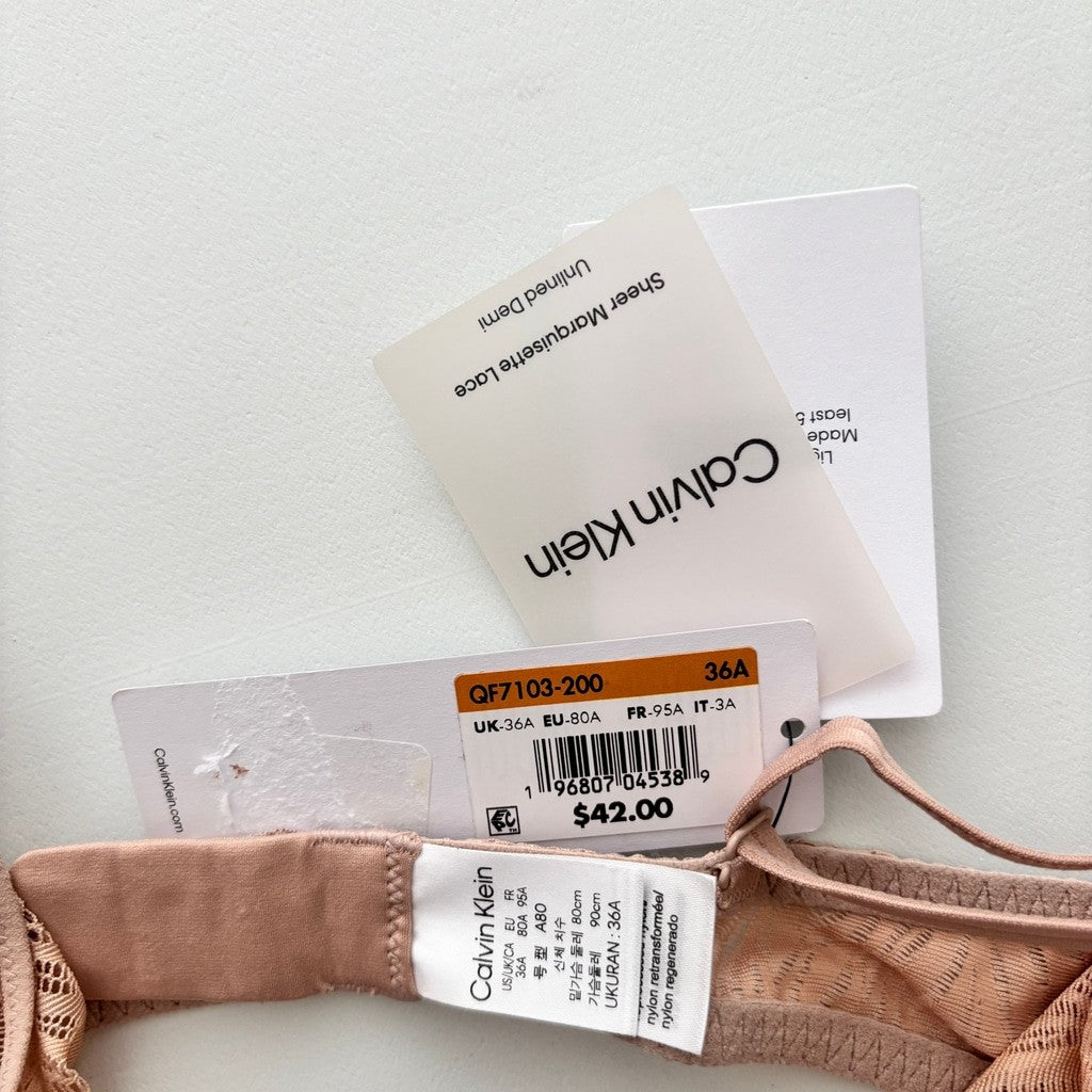 Calvin Klein Women's 36A Nude Sheer Marquisette Lace Unlined Demi Bra NWT