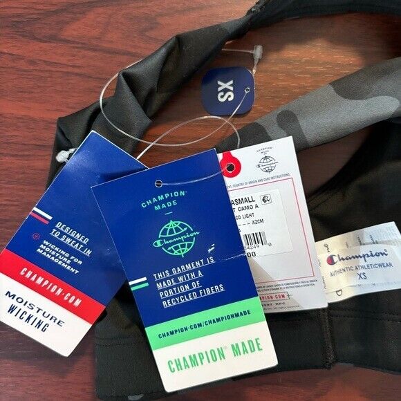 CHAMPION Women's XS Soft Touch Black and Grey Camo Light-Support Sports Bra NWT