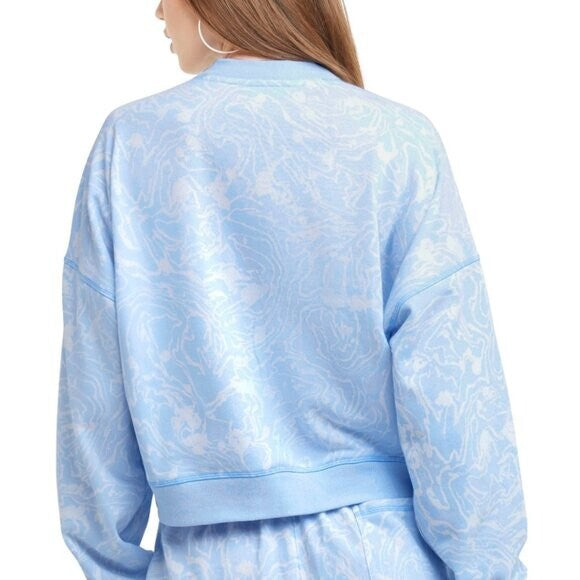 CHAMPION Women's XXL Campus-Print French Terry Crewneck Blue and White Sweater NWT