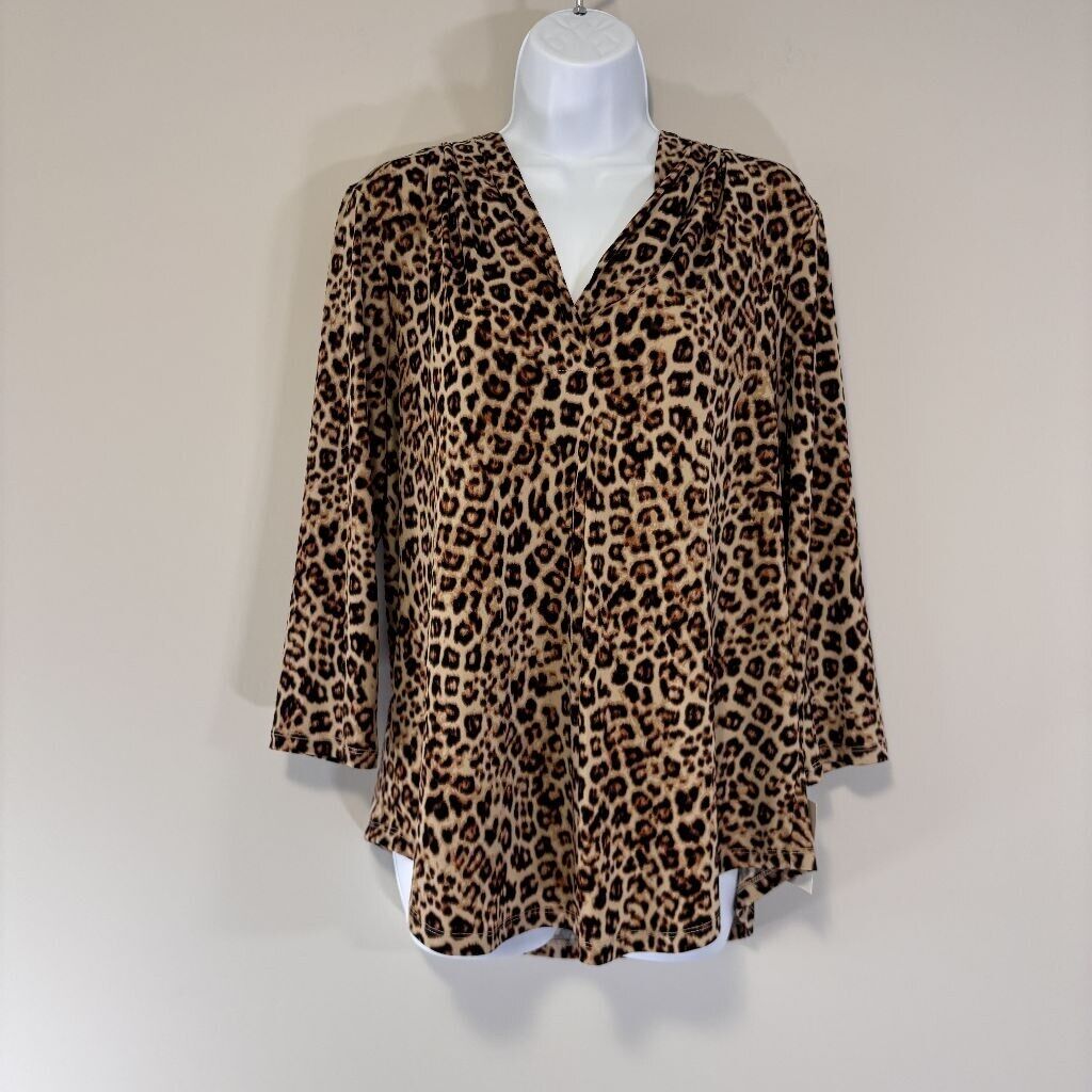 Charter Club Women's Size Large Leopard-Print V-Neck Jersey Top NWT
