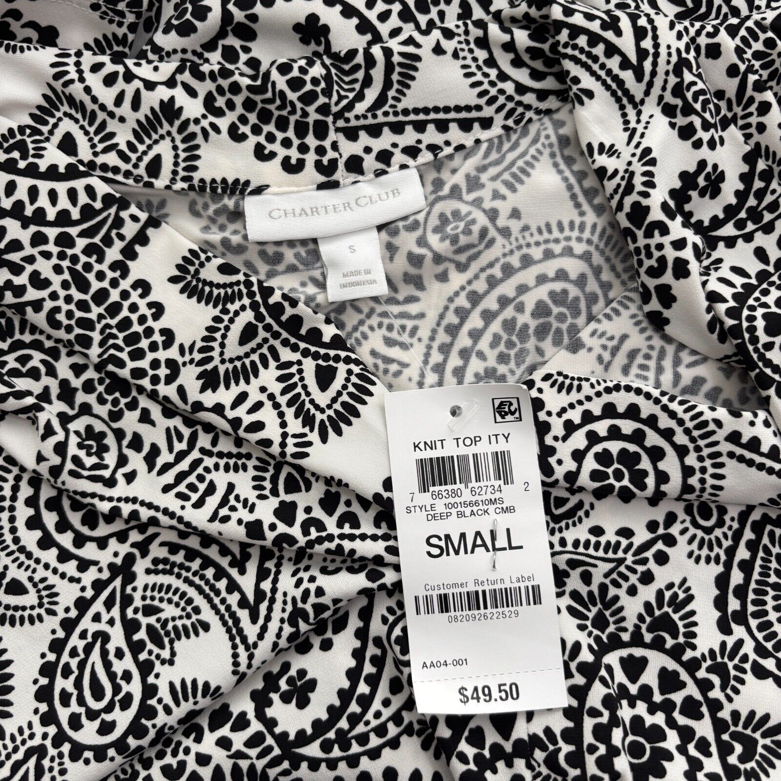 Charter Club Women's White & Black Bold Paisley Printed Top NWT