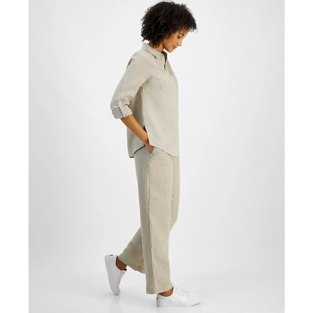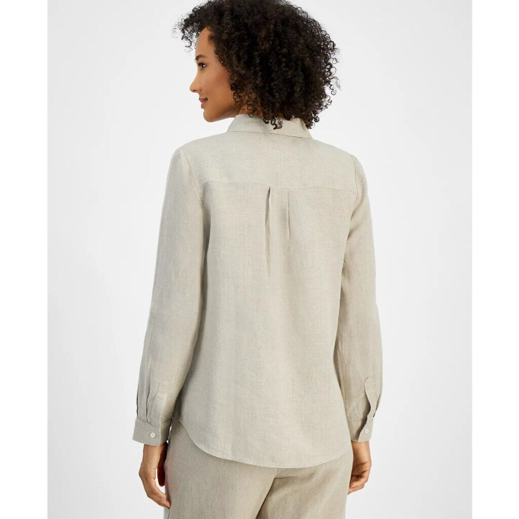 Charter Club Women's XL Light Brown 100% Linen Utility Button-Down Shirt NWT