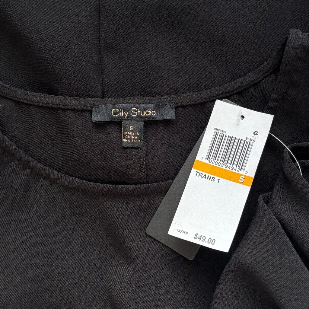 City Studios Juniors' Small Black Tie-Waist Round Neck Short Sleeve Dress NWT