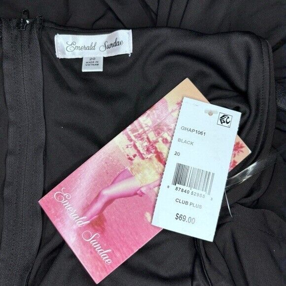 EMERALD SUNDAE Trendy Plus Size 20W Black Ruched Bodycon Midi Dress NWT.