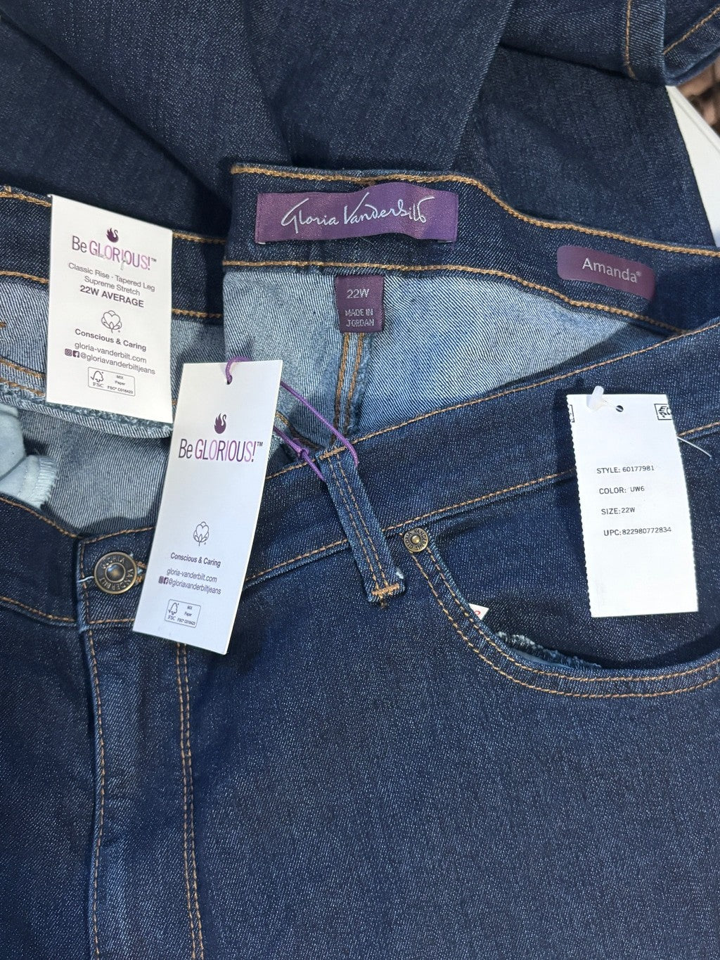 Gloria Vanderbilt Plus Size 22W Amanda Original Slimming Dark Jeans NWT