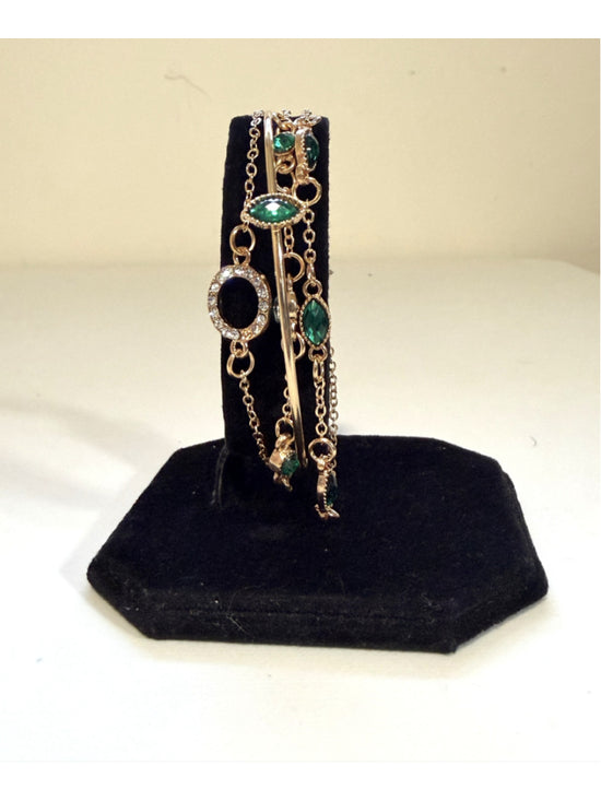 Green and Gold Coloured Bangle and Chain Bracelet Set w/ Crystals NWT