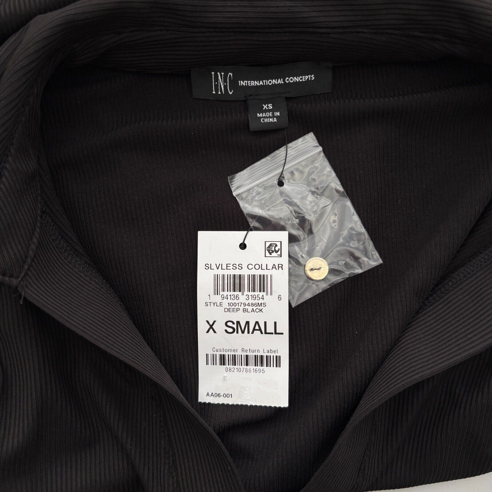 I.N.C. International Concepts Women's Black Ribbed V-Neck Tank Top NWT
