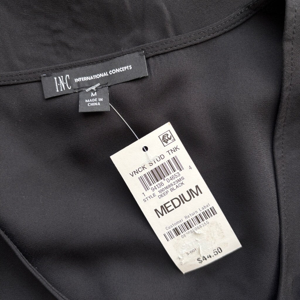 INC International Concepts Medium Black Ruched-Front Short-Sleeve Top NWT