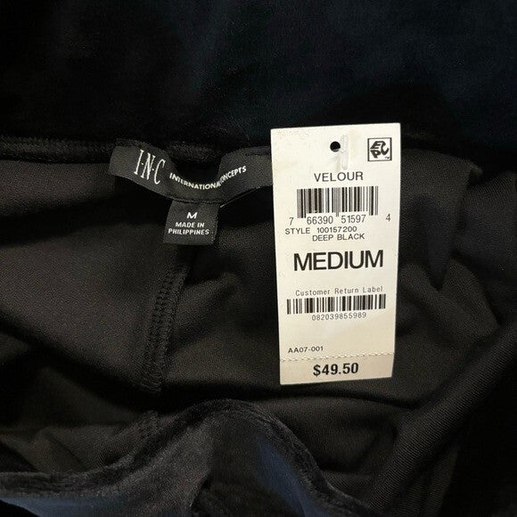 INC International Concepts Size M Black Velour High Rise Flare Leg Pants NWT.