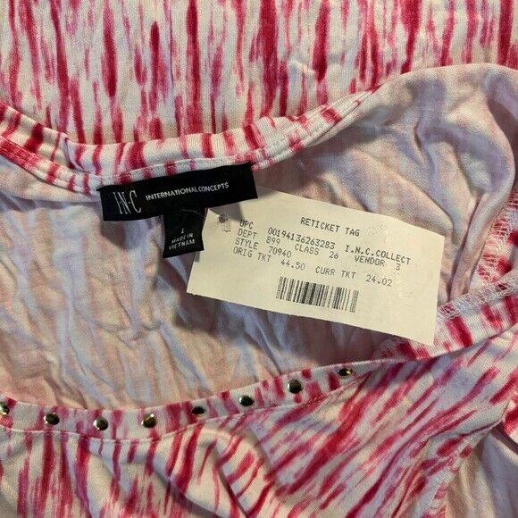 INC International Concepts White & Pink Sleeveless Top with Stud Details NWT