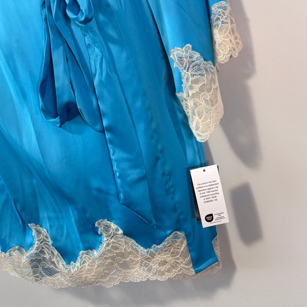 INC International Concepts Women's Blue w/ Lace-Trim Stretch Satin Robe NWT