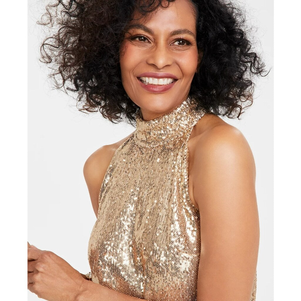 INC International Concepts Women's Medium Party Gold Sequin Halter Top NWT