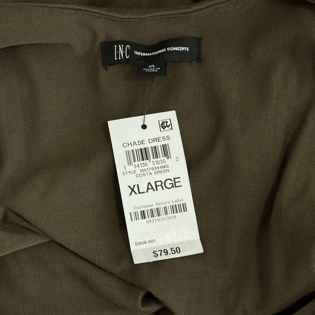 INC International Concepts Women's XL Olive Green Tie-Waist Midi Dress NWT