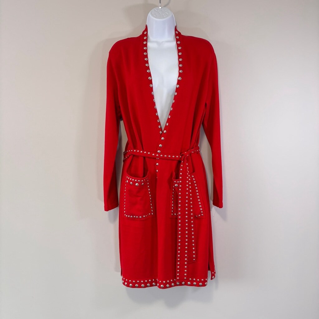 INC International Concepts XS Silver Studded Red Long Belted Cardigan NWT