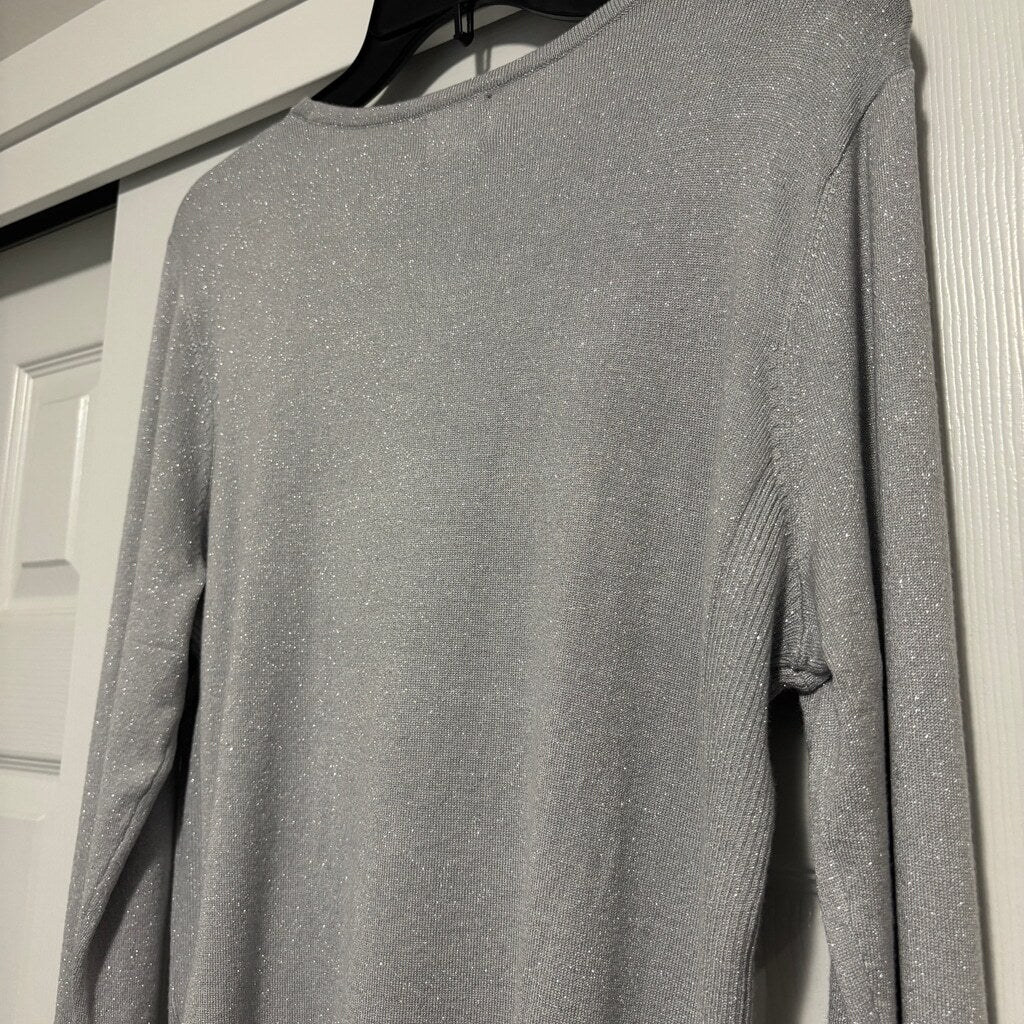 JM Collection Petite Large Grey & Silver Sparkly Rivet-Detail Sweater NWT
