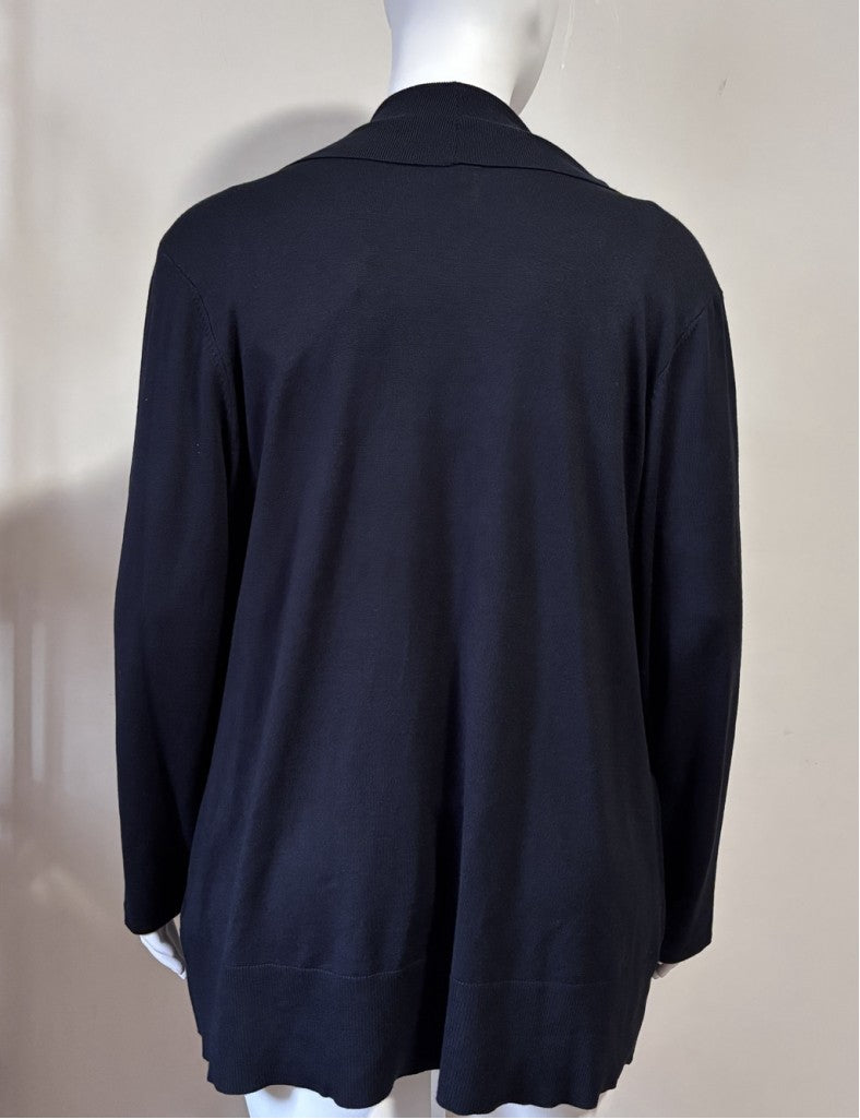 Keywords: JM Collection cardigan, black plus size sweater, women’s 3X cardigan, open front knitwear, layering sweater, workwear topper