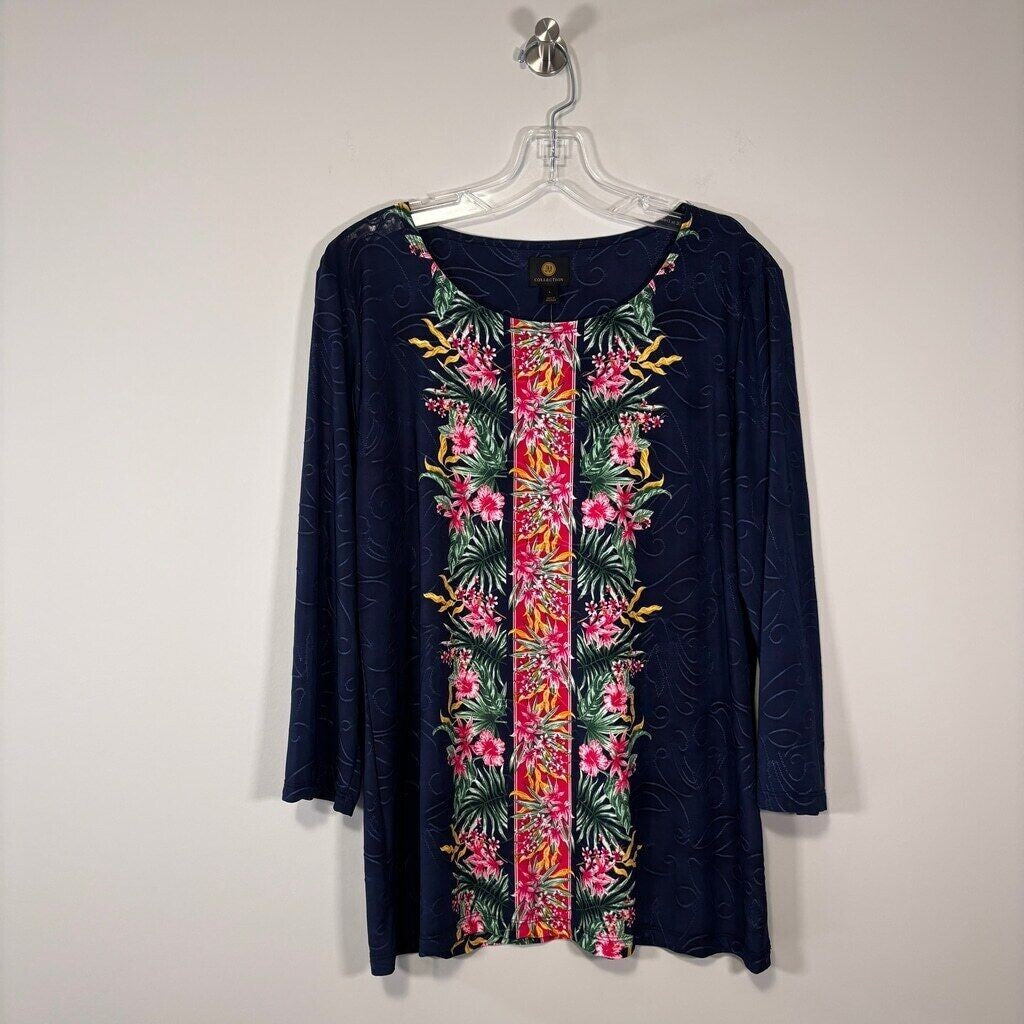 JM Collection Women's Tropical Runway Jacquard Tunic Top NWT
