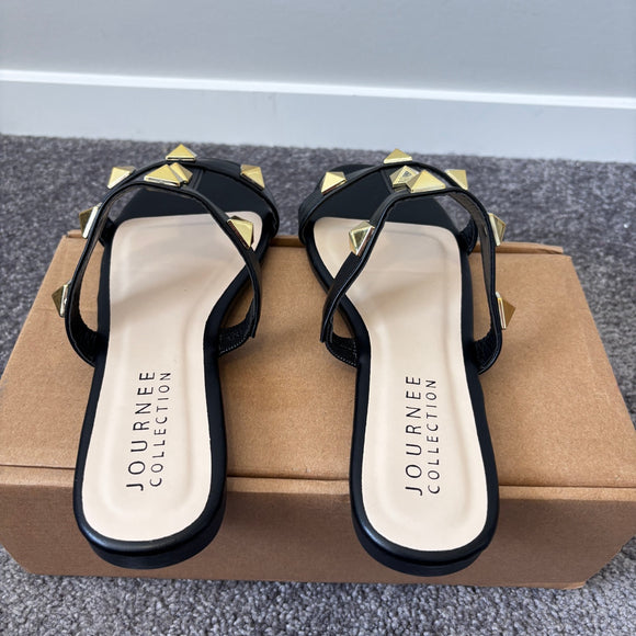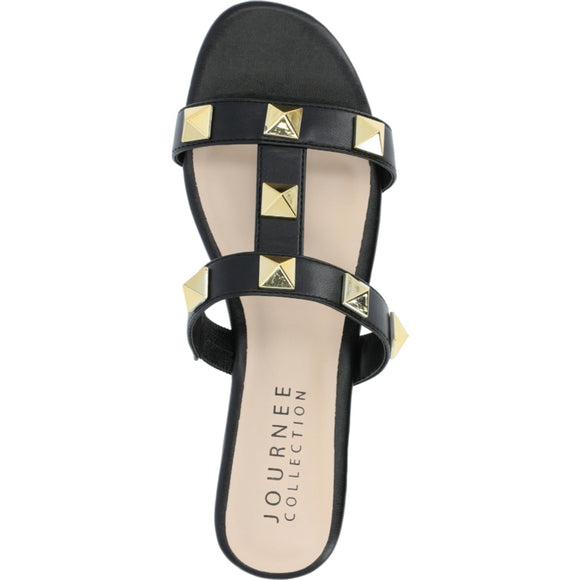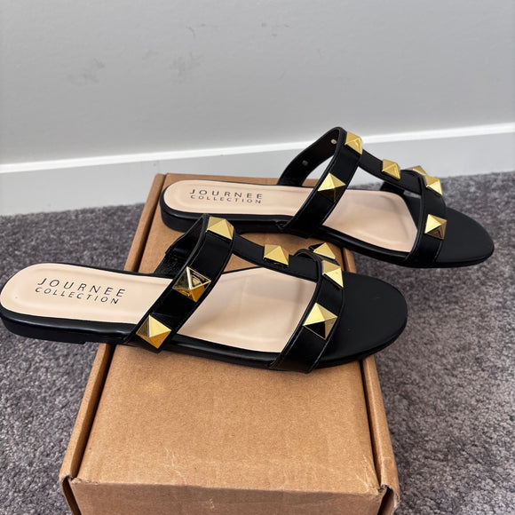 Journee Collection Women's 9 Black & Gold Kendall Studded Sandals NIB