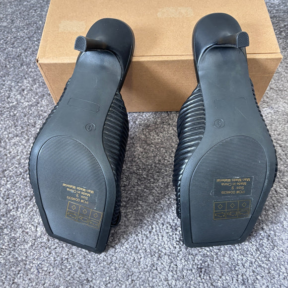 Journee Collection Women's 9 Black Greer Pleated Sandals / Heeled Shoes NIB