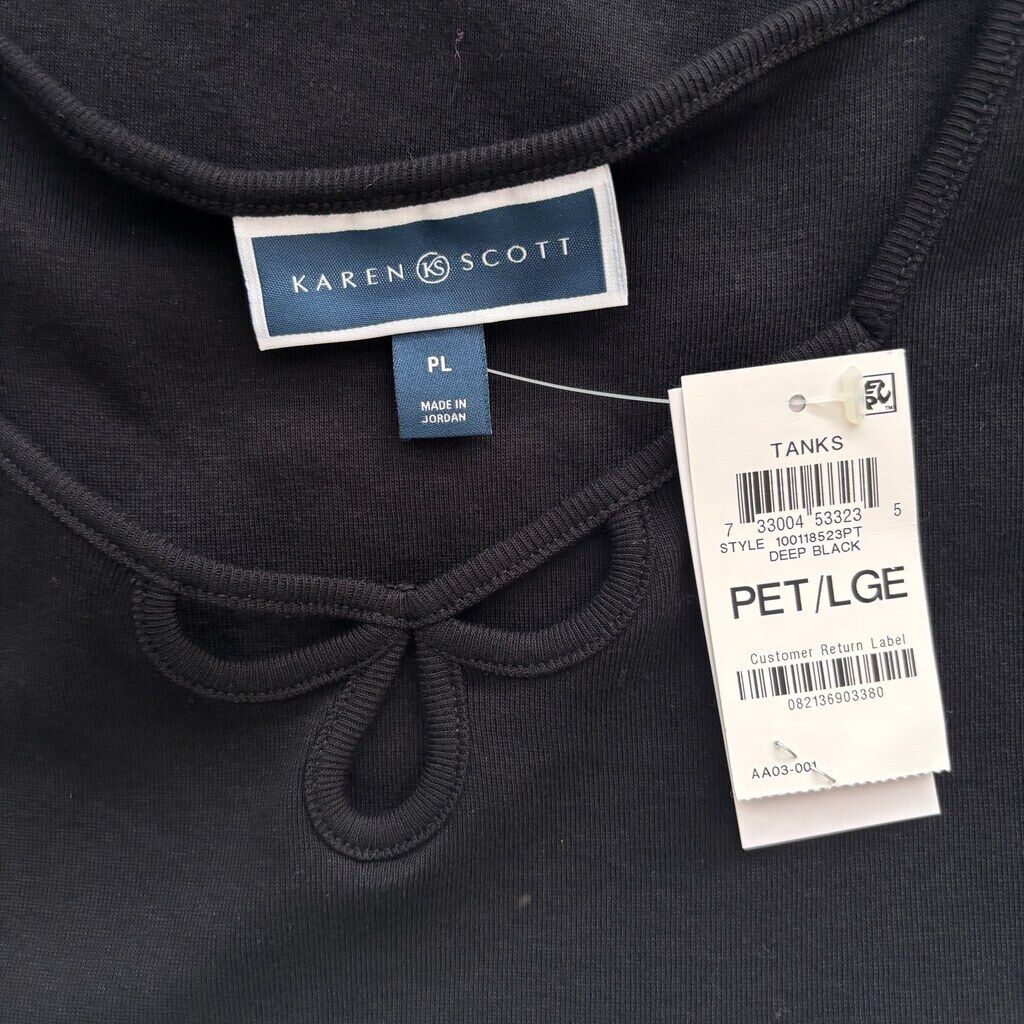 Karen Scott Petite Large 100% Cotton Black Sweetheart Keyhole Tank Top NWT
