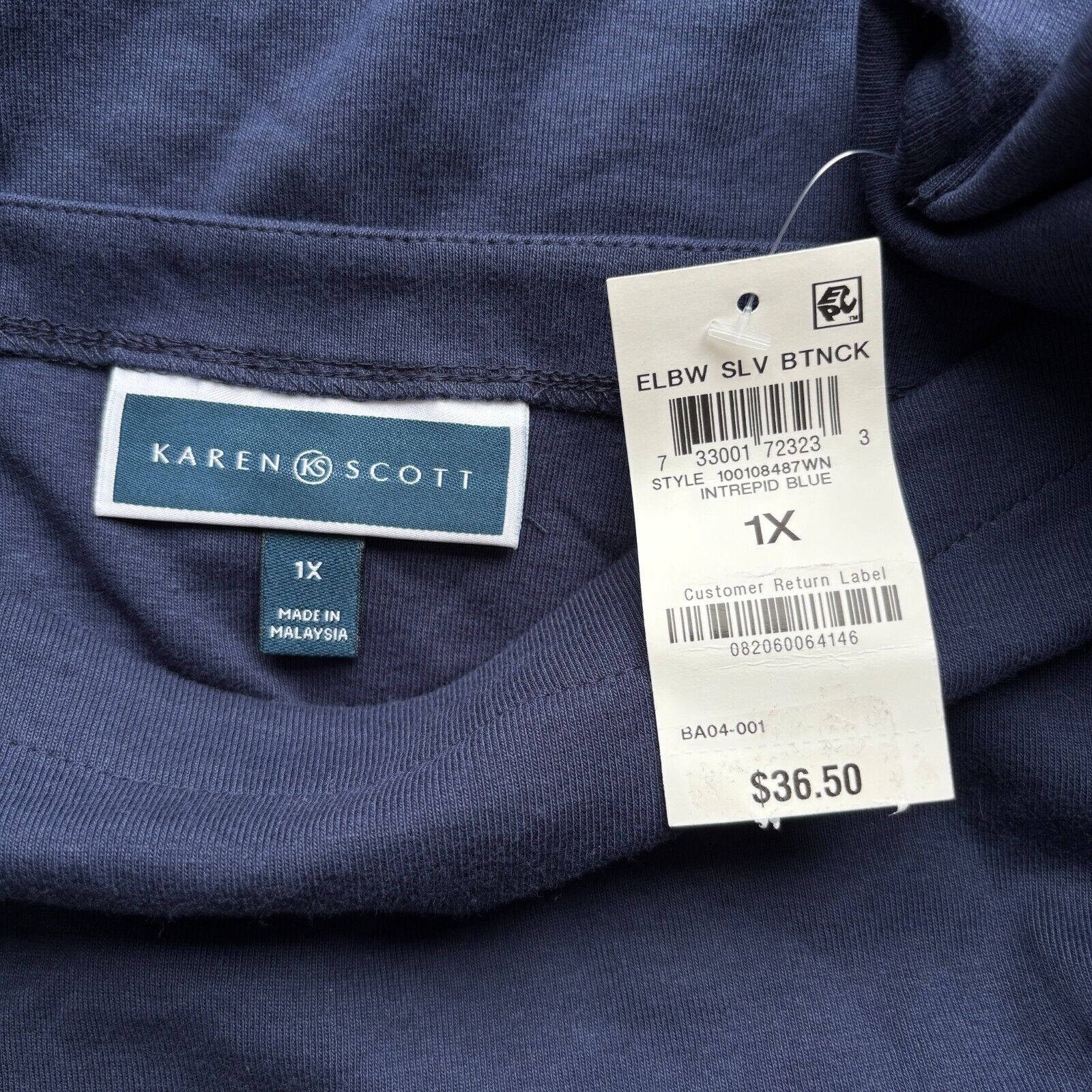 Karen Scott Plus Size Navy Blue 100% Cotton Elbow-Sleeve Top NWT.