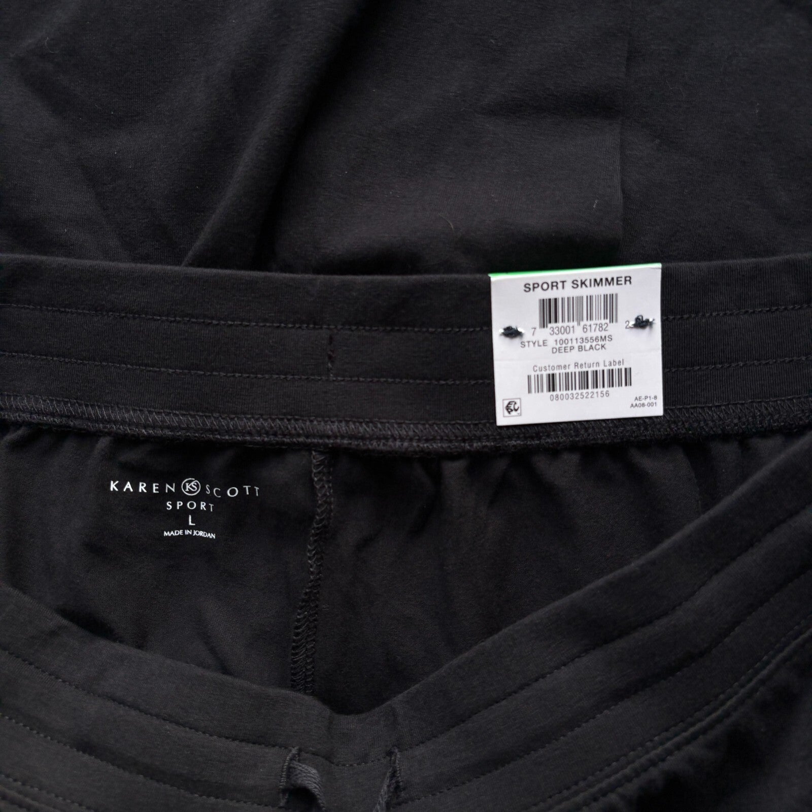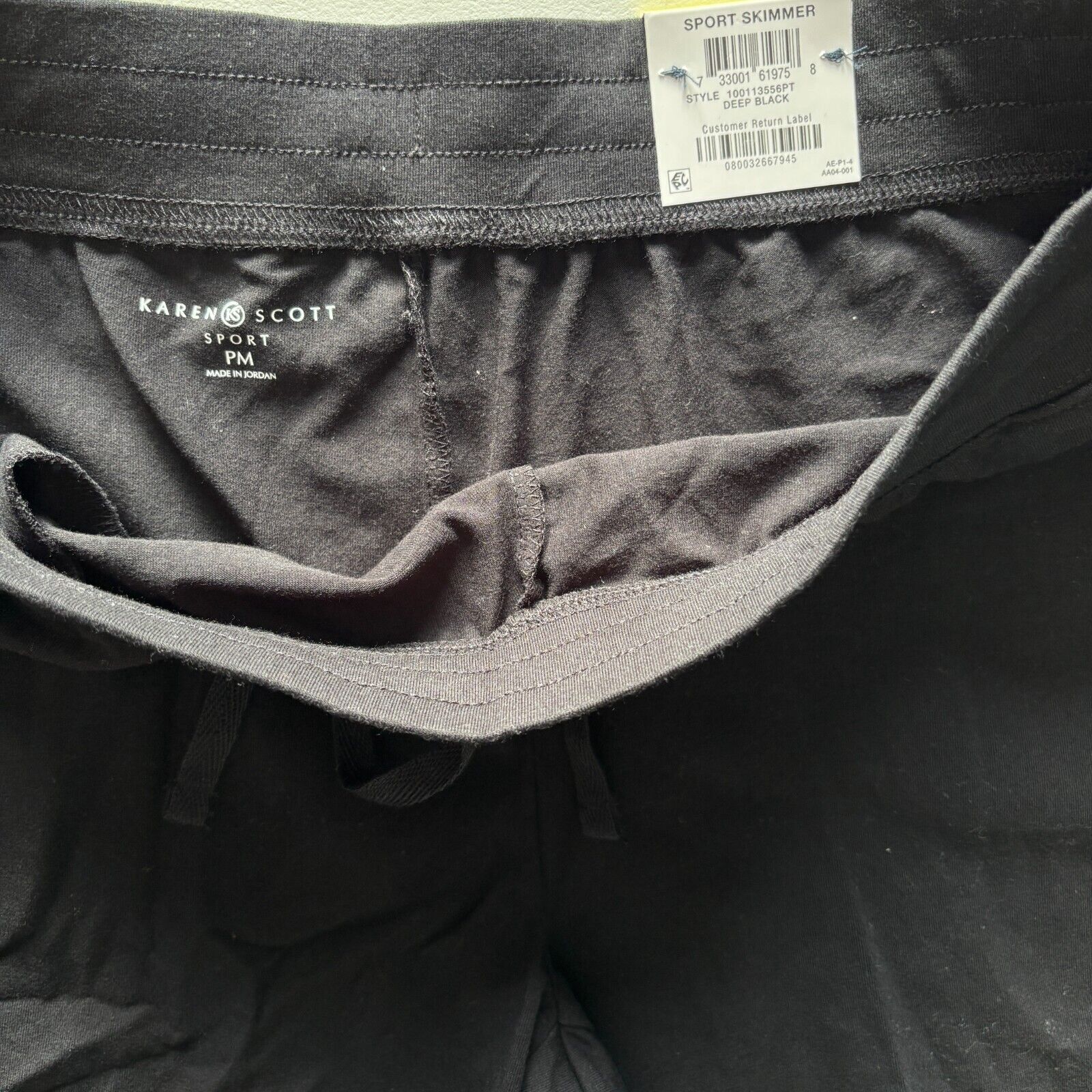 Karen Scott Skimmer Black Drawstring Knit Stretchy Knee-Length Shorts NWT