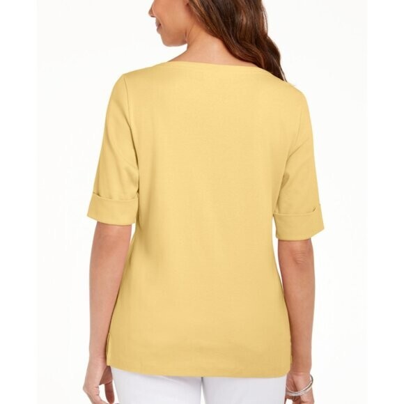 Karen Scott Women's 100% Cotton Yellow Boat-Neck Top / T-Shirt NWT.