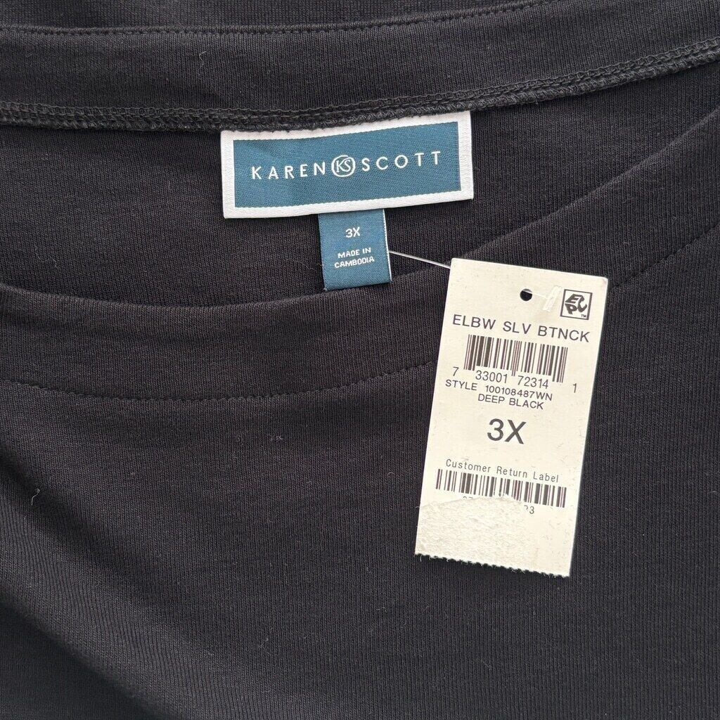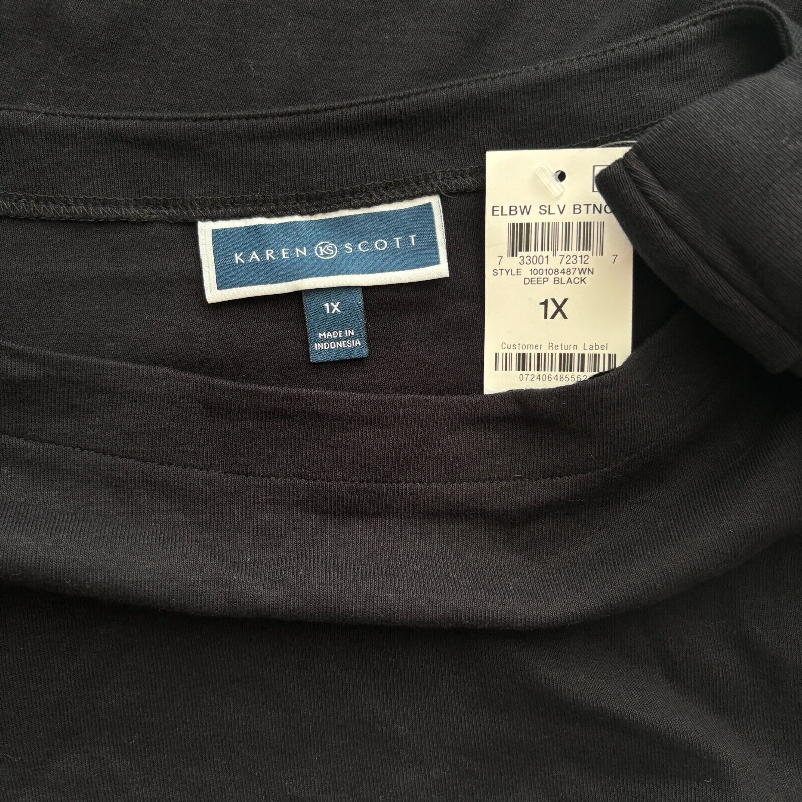 Karen Scott Women's Plus Size 100% Cotton Black Elbow-Sleeve Top NWT