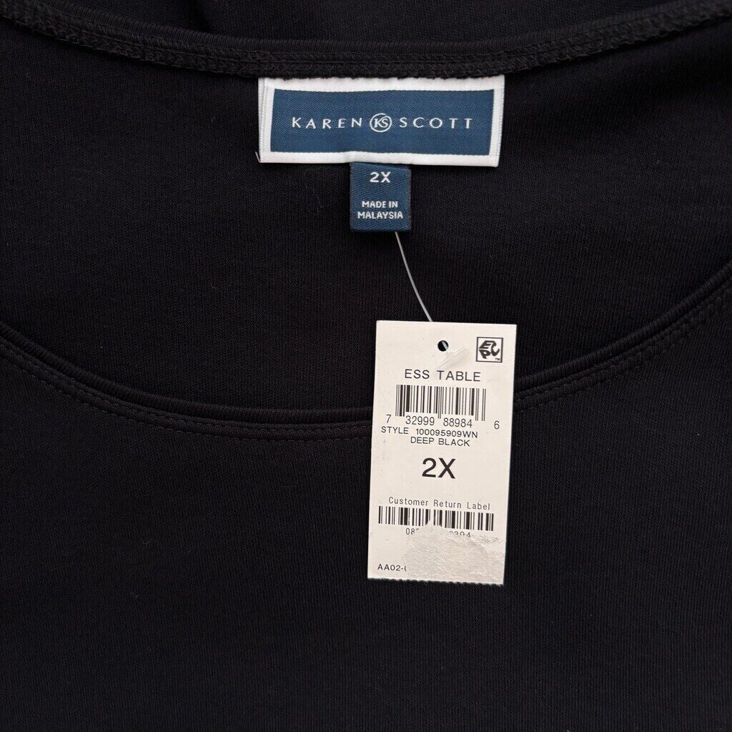 Karen Scott Women's Plus Size 100% Cotton Black Long Sleeve Casual Top NWT