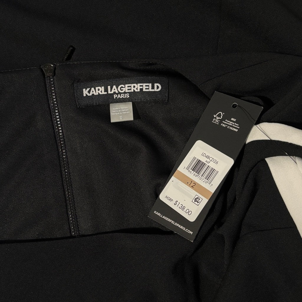 Karl Lagerfeld Paris Size 12 Black & White Bow Trim Crepe Shift Dress NWT