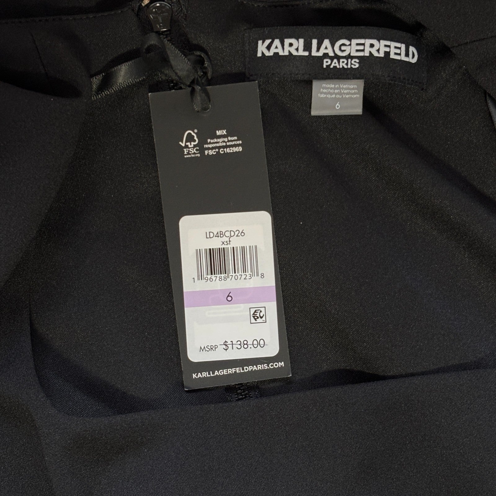 Karl Lagerfeld Paris Size 6 Black & White Bow Trim Crepe Shift Dress NWT