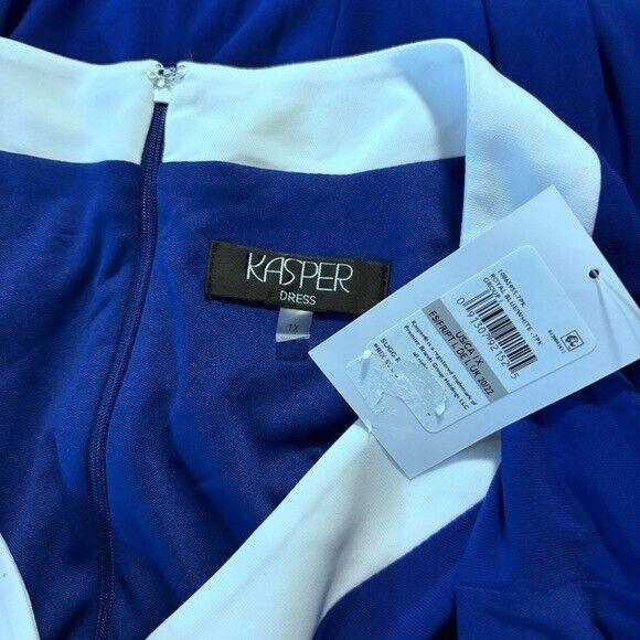 KASPER Plus Size Blue & White Colorblocked Faux-Wrap Cap-Sleeve Dress NWT