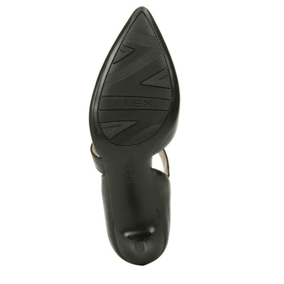 On-point and on-trend. This pump is a true stunner. Faux leather upper with a pointed toe, slip-on fit, and asymmetrical, strap detail with elastic goring for extra flexibility. Toe box and heel counter. Soft System comfort package provides all-day support, flex, and cushioning. Traction sole provides you with extra stability. Just Right Height 2.75-inch heel.