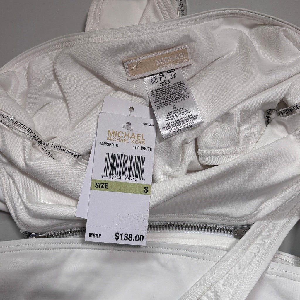 Michael Kors Women's Size 8 White Zip-Trim Cutout One Piece Swimsuit NWT