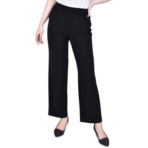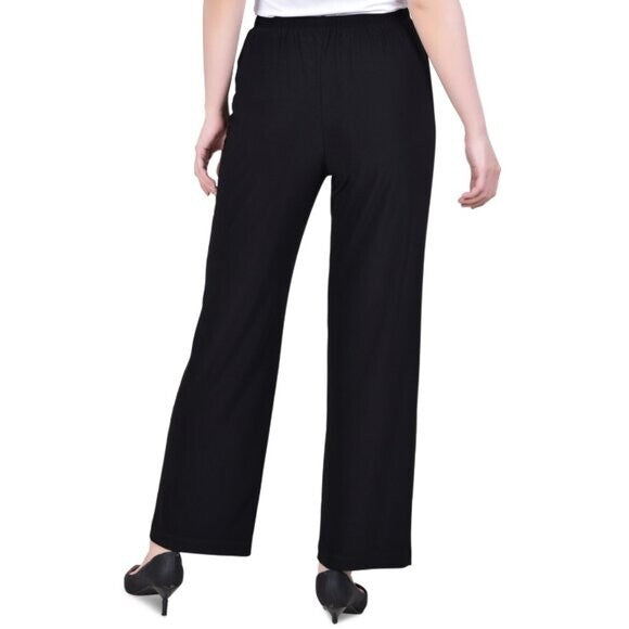 NY COLLECTION Petite Pull-On Straight-Leg Black Stretchy Elastic Waist Pants NWT