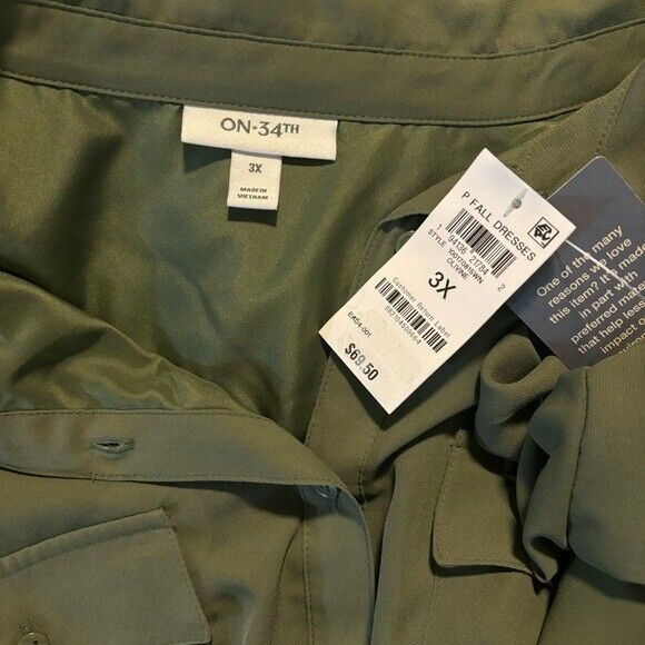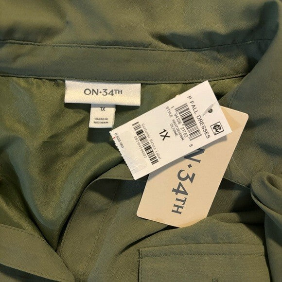 On 34th Plus Size Green Long-Sleeve Belted Shirtdress NWT