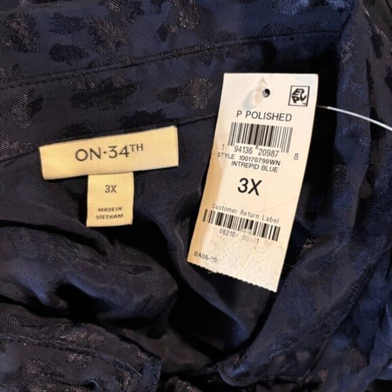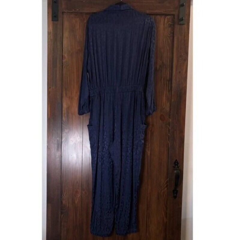 On 34th Plus Size Leopard Print Navy Blue Jacquard Jumpsuit NWT