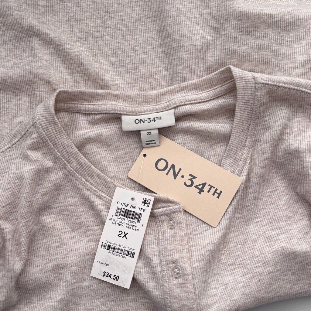 On 34th Women's Plus Size 2X Light Beige Ribbed Long Sleeve Henley Top NWT.
