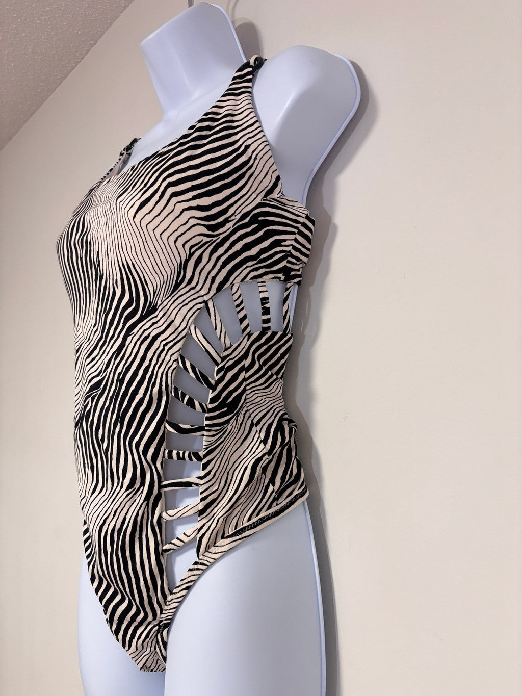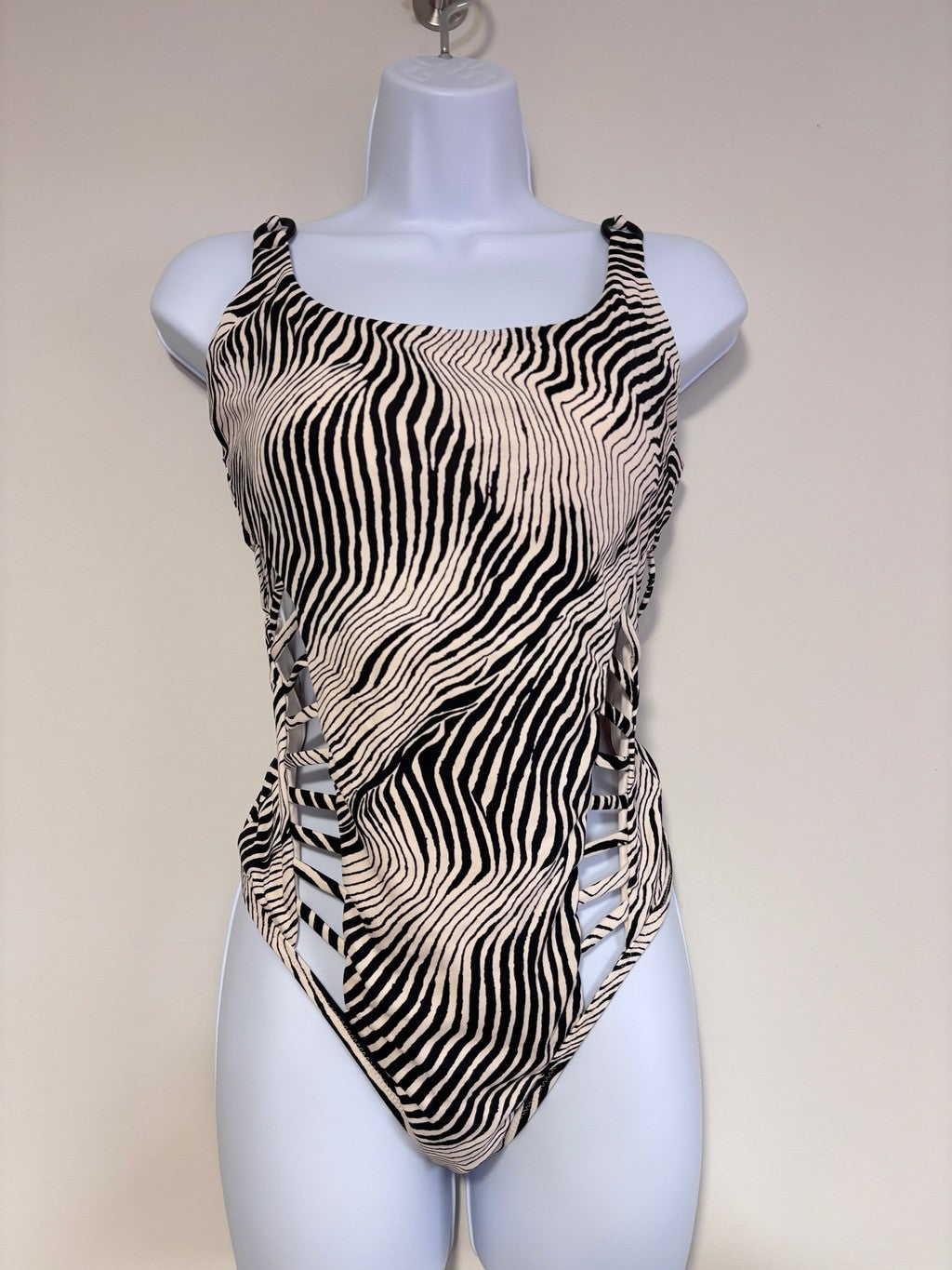 Red Carter Size Large Zebra Print Cutout One Piece Swimsuit Beige & Black NWT