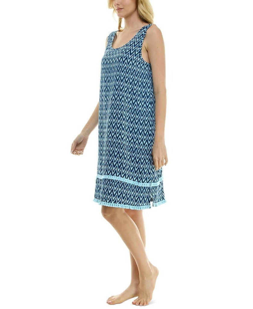 Roudelain Women's Dark Blue Printed Tassel-Trim Tank Nightgown NWT