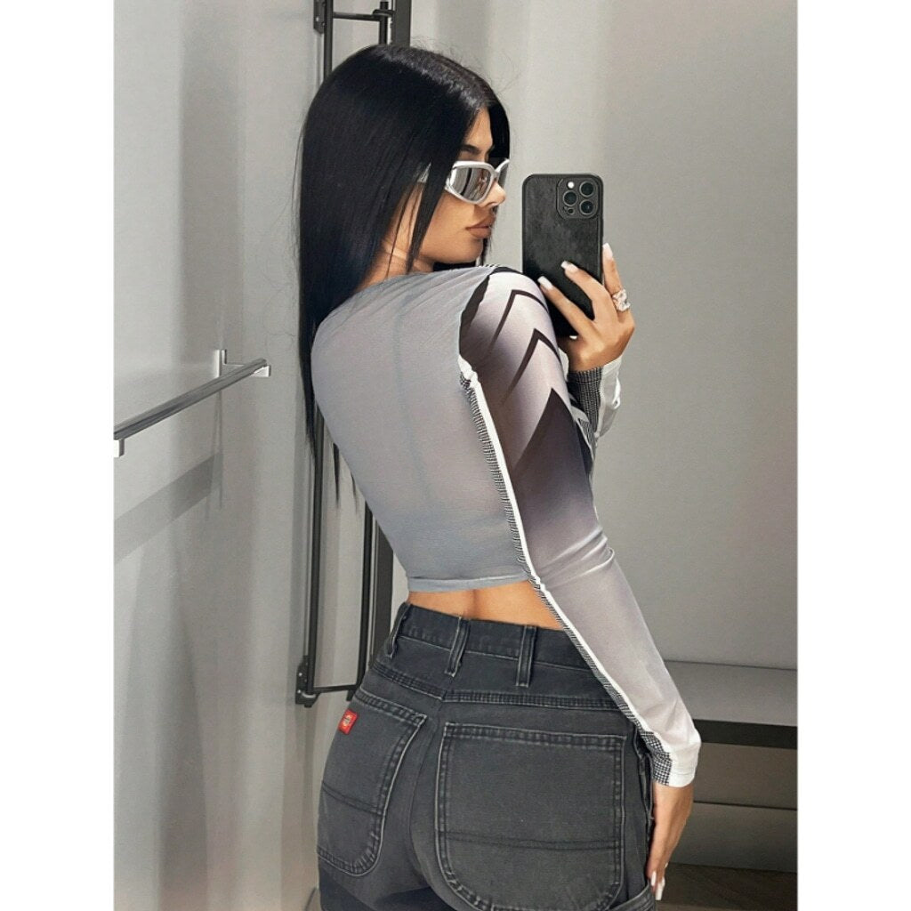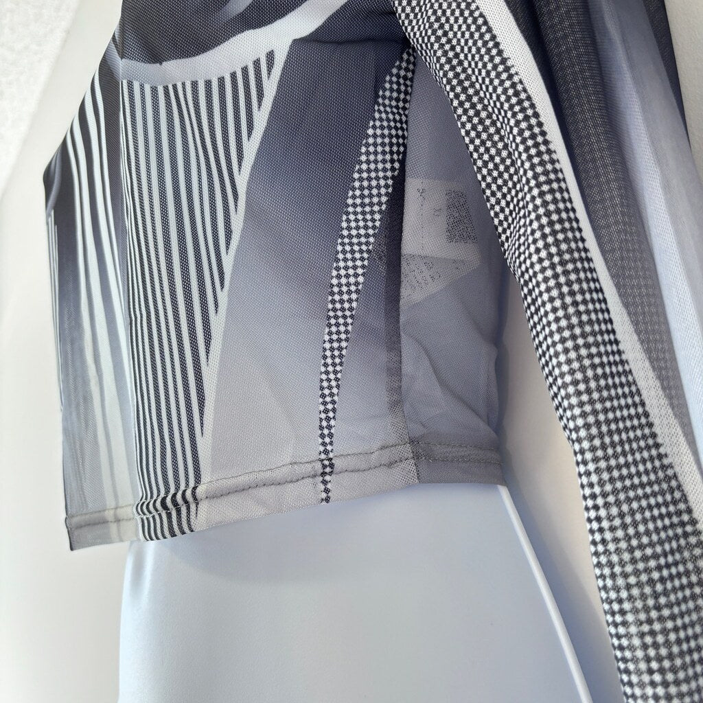 SHEIN ICON Women's Size S Gray Cyber Graphic Print Casual Sheer Crop Top NIB