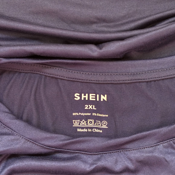 Keywords: SHEIN teddy bear shirt, plus size graphic tee, navy blue women’s top, casual oversized shirt, 2XL SHEIN tee, cute bear print top