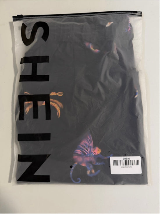 SHEIN Size Medium Black Printed Wide Leg High Waist Pants NWT